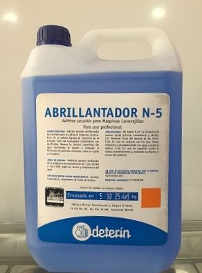 Abrillantador N-5. 5 litros. Abrillantador para máquinas lavavajillas de uso profesional. Es un aditivo líquido de inyección en el aclarado final del lavavajillas utilizándose con dosificador.