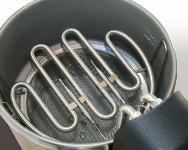 Freidora, marca Movilfrit. Características: 5 litros. Capacidad de aceite: 4 L y capacidad de agua: 1 L. De agua y aceite, lo que resuelve el problema de la mezcla de sabores en la fritura. Potencia: 2 Kw. Producción de fritura por hora: 4-5 Kg. Dimensiones (Largo x Fondo x Alto): 258 x 255 x 310 mm. Dimensiones cuba: 230 mm.