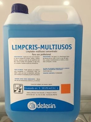 Limpiador multiusos concentrado. 5 litros. Producto especial para la limpieza de cristales, espejos, azulejos, formicas, cerámicas y todo tipo de superficies lavables. Olor agradable. No deja velos y no se empaña.